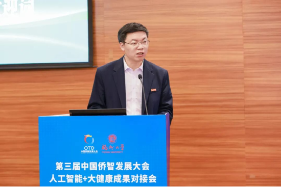 随后的成果对接会上,福州大学党委常委、副校长张亚雷代表学校向与会嘉宾表示热烈欢迎。张亚雷副校长强调,福州大学作为国家“双一流”建设高校,坚定不移贯彻党中央科技工作“四个面向”战略部署,并重点介绍了学校落实省委、省政府高起点建设医学院要求取得的成效。他指出,人工智能与大健康融合既需科技硬实力,也需全球化视野,本次大会正是汇聚侨智侨力、推动跨界协同创新的生动实践。张亚雷副校长提出三点愿景:一是以侨为桥,深化全球协同,共建联合实验室攻克核心技术瓶颈;二是以智赋能,依托国家大学科技园等平台,加速“AI+医疗”模式落地惠及民生福祉;三是以才为本,培育医工交叉复合人才,为产业升级注入新动能。